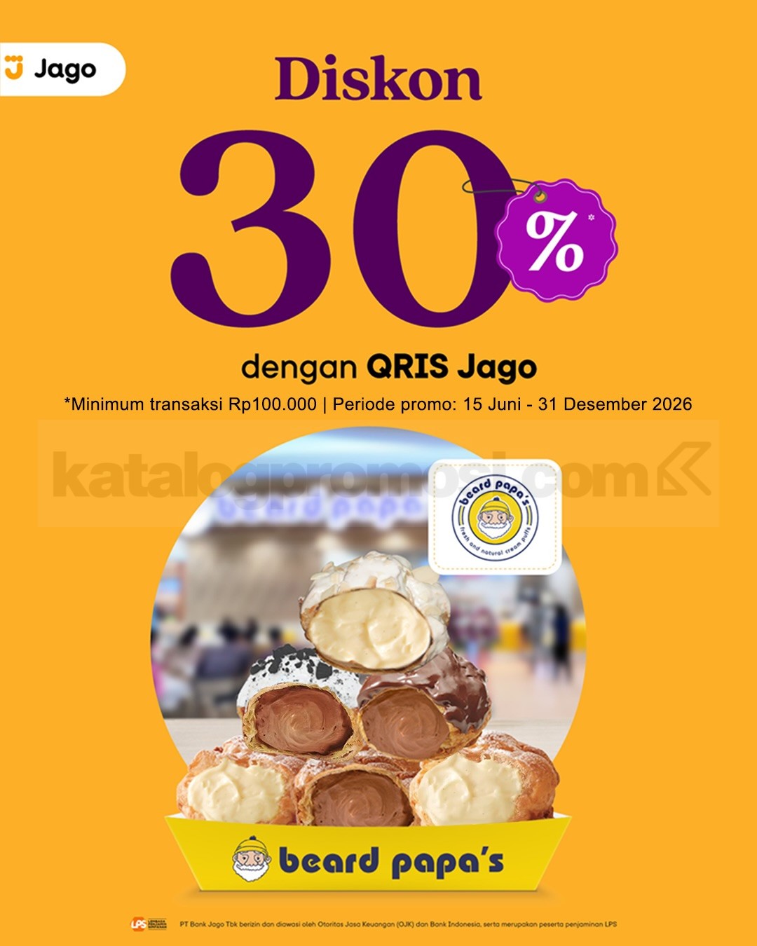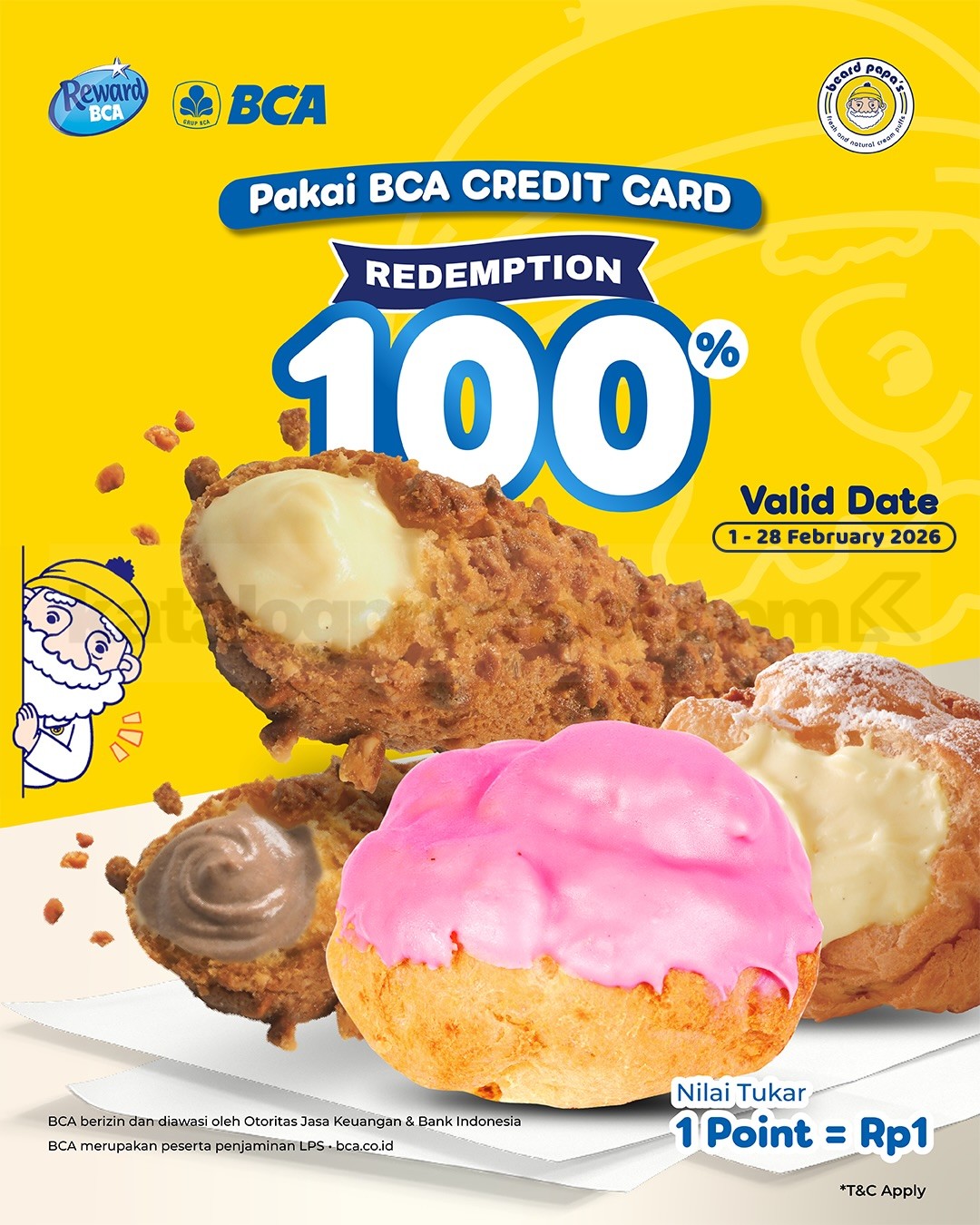 Promo berlaku di seluruh outlet Beard Papa’s di Indonesia, kecuali untuk promo BCA Regular yang tidak berlaku di outlet bandara.