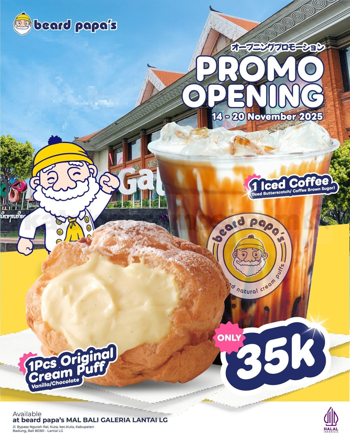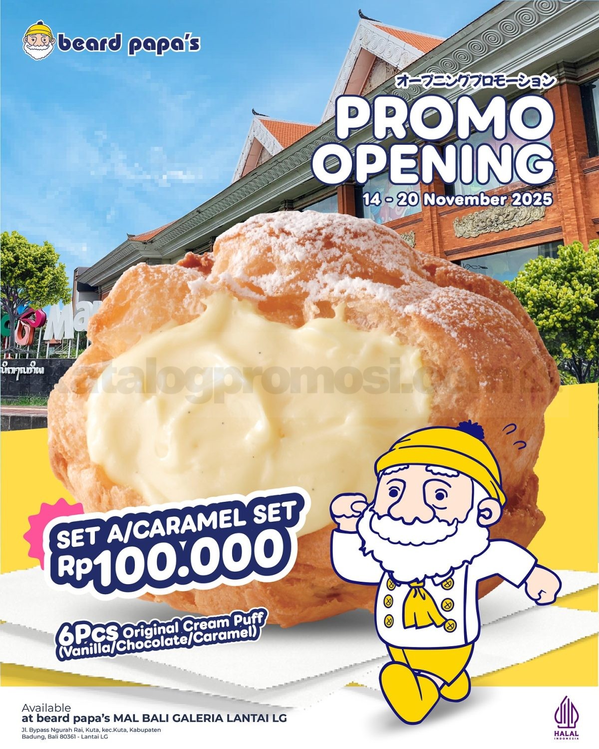 Promo Beard Papa’s Grand Opening Bali paket spesial mulai Rp.35.000 nikmati cream puff lezat + kopi favorit, berlaku 14–20 November 2025 di Mal Bali Galeria.