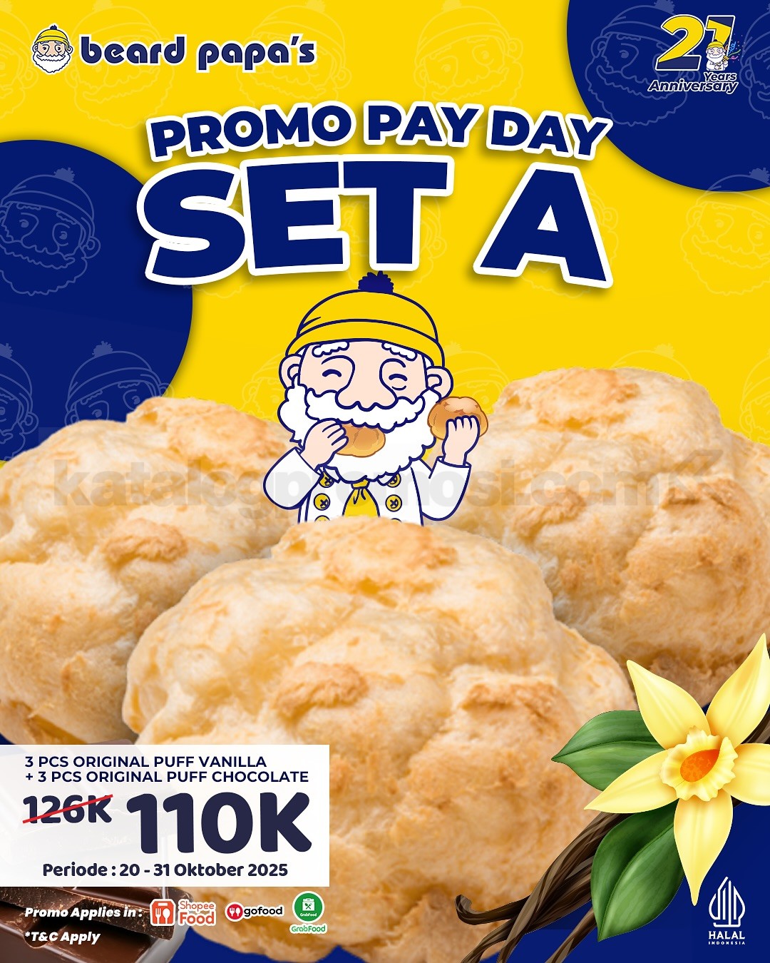 👉 Cek gambar promo Beard Papa’s Payday October di bawah ini untuk lihat pilihan set puff dan rasa manisnya yang menggoda!