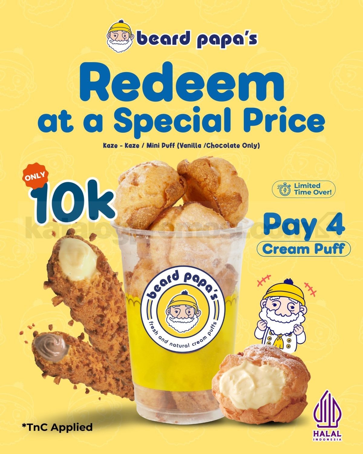 Promo berlaku di seluruh outlet Beard Papa’s kecuali outlet bandara.