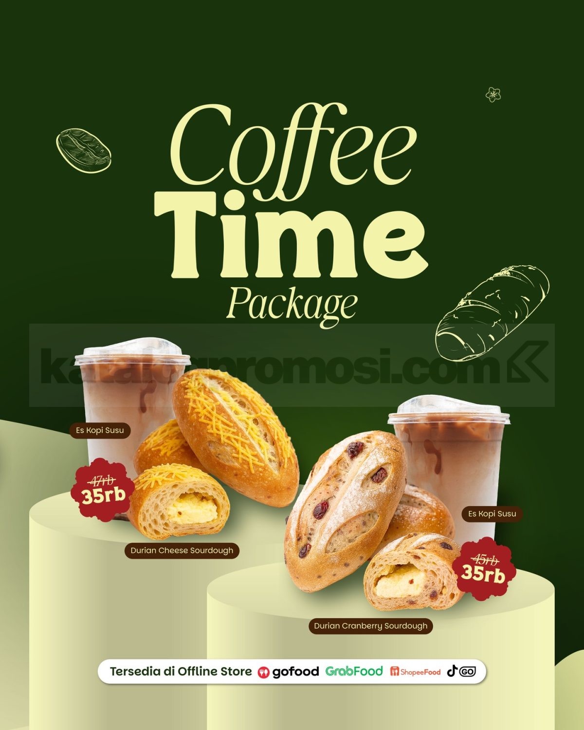 - Es Kopi Susu dan Durian Cranberry Sourdough seharga Rp. 35.000