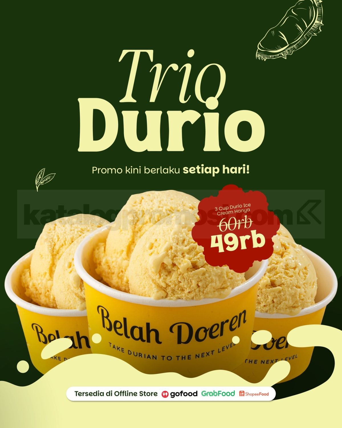 - 3 Cup Durio Ice Cream seharga Rp. 49.000