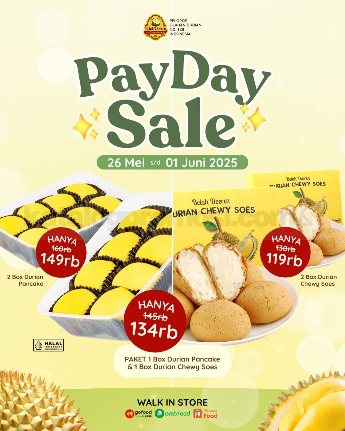 Promo Belah Doeren 12.12 Serba Diskon Rp. 12.000, nikmati paket Chewy, Pancake & Durian hemat + berlaku 12-14 Desember 2025.