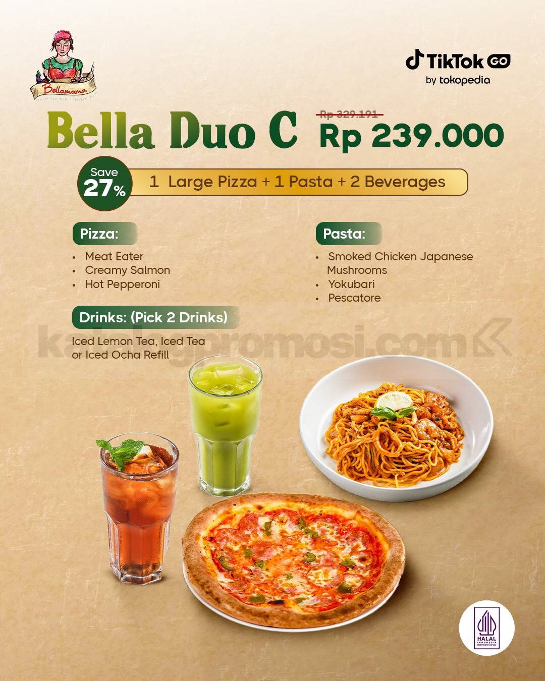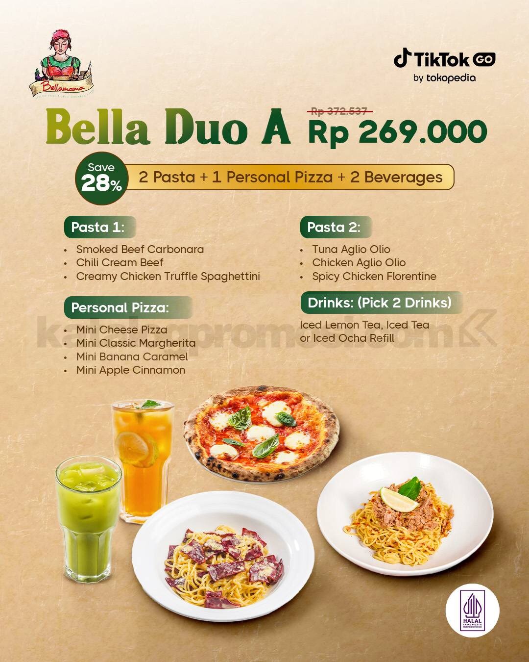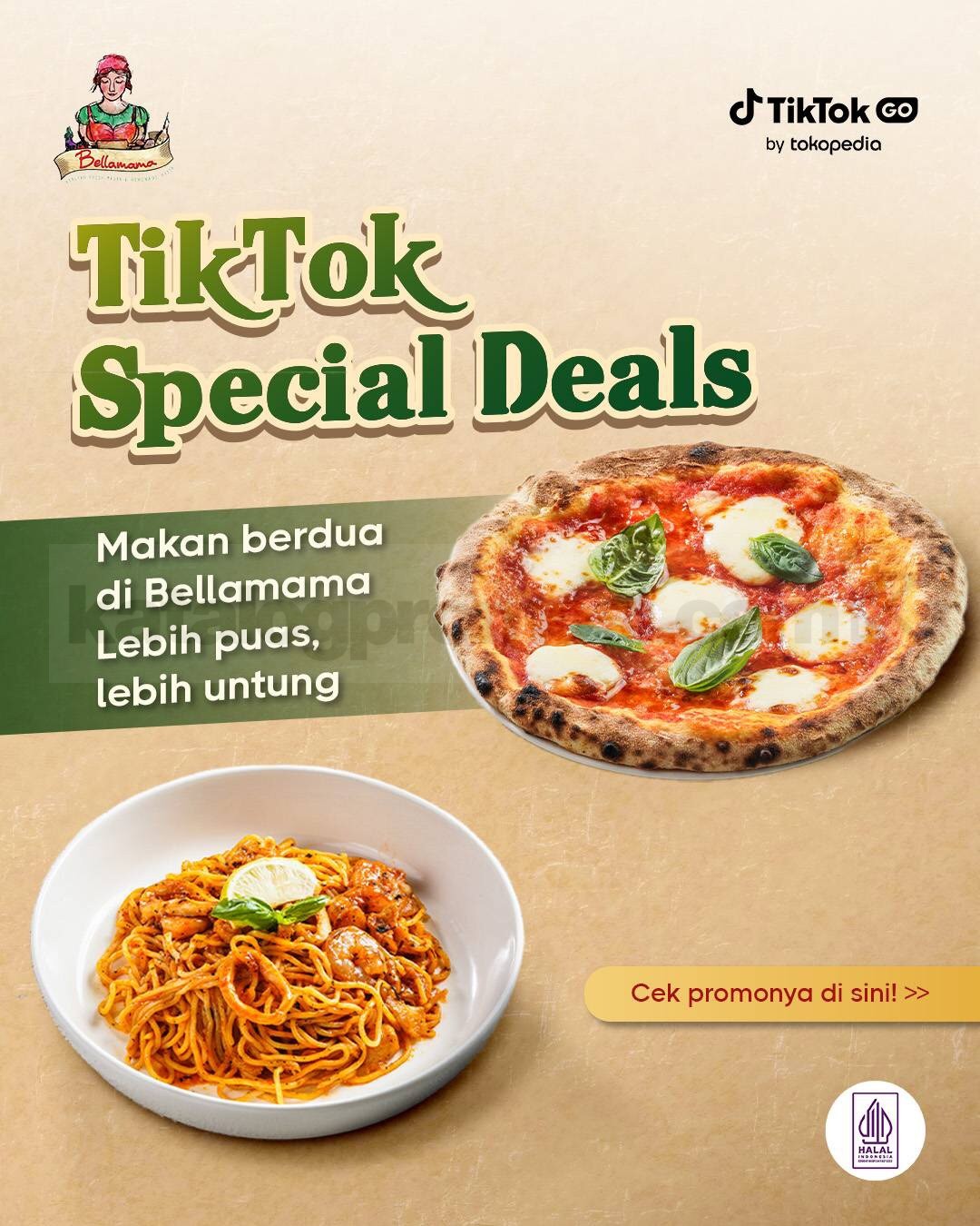 Promo Bellamama TikTok Special Deals mulai Rp. 185.000 paket berdua pizza pasta minuman selama promo berlangsung di outlet tertentu.