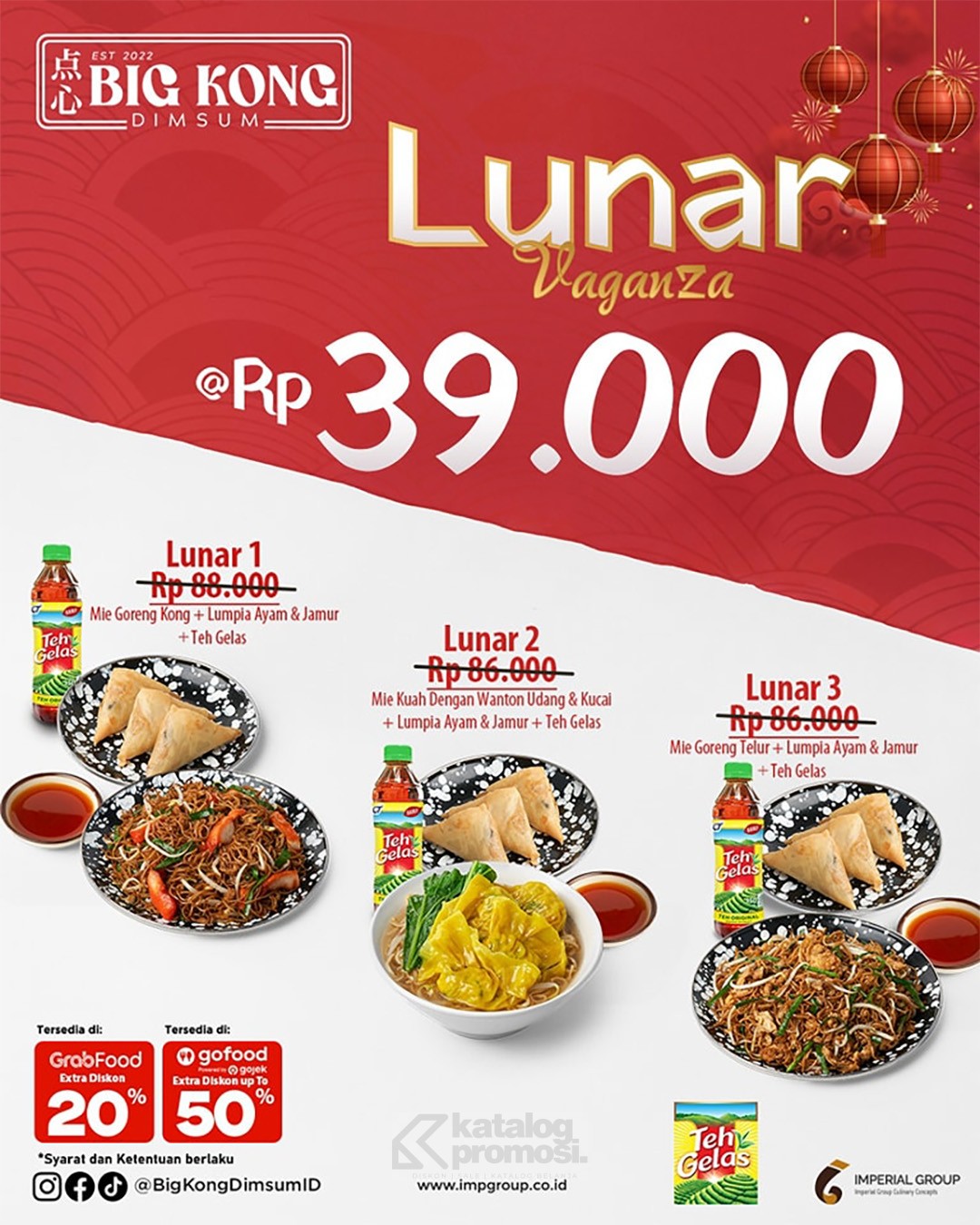 Promo ini berlaku untuk dine-in maupun takeaway di seluruh outlet Big Kong Dimsum. Tinggal datang, pilih menu yang kamu mau, dan nikmati harga lebih hemat tanpa syarat khusus lainnya. Cocok banget buat makan siang, makan malam, atau sekadar ngemil cantik bareng teman.