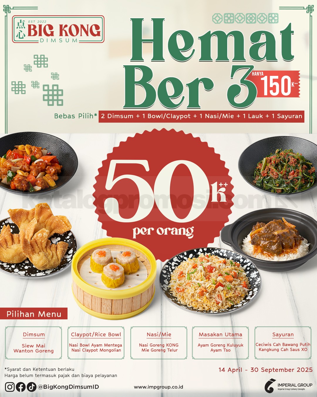 Promo Big Kong Dimsum SERBU Serba Rp. 35.000 nikmati paket lengkap & mengenyangkan + pilihan menu favorit berlaku 1โ15 Desember 2025 di seluruh outlet.