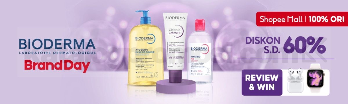 Promo Bioderma Brand Day diskon hingga 60% + hadiah menarik dengan belanja min. Rp. 350.000, berlaku mulai tanggal 1 April 2026 – 30 April 2026.