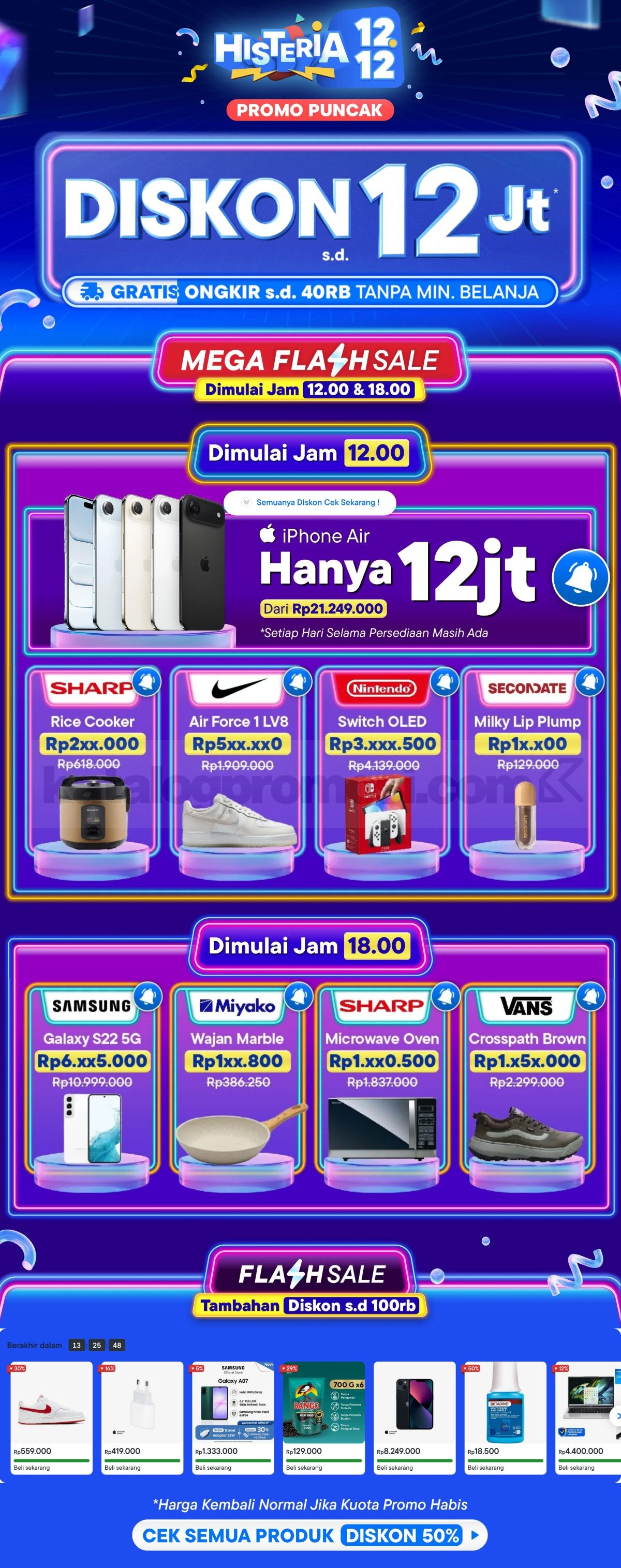 Kalau kamu sudah punya wishlist untuk akhir tahun, promo ini bisa jadi waktu terbaik buat checkout. Semua kategori ikut serta, diskon besar tersedia, dan kamu bisa manfaatkan fitur flash sale serta gratis ongkir buat pengalaman belanja yang lebih hemat.