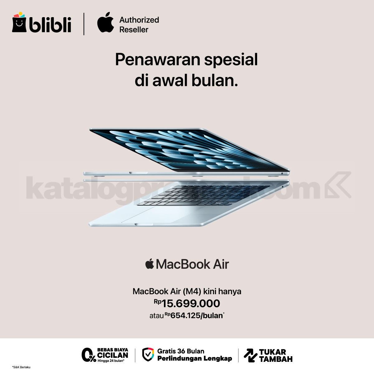 Produk yang termasuk adalah MacBook Air terbaru dengan chip Apple M4 yang dijual resmi di Blibli.