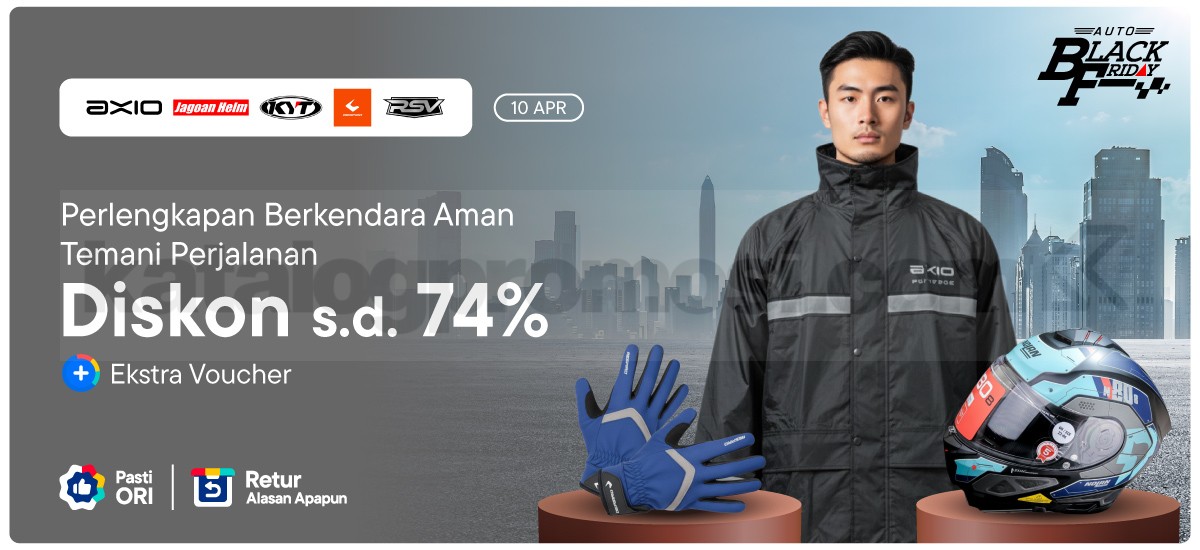 Di event ini, kamu bisa nikmatin potongan harga hingga 74% untuk berbagai produk dari Axio, KYT, RSV, dan masih banyak lagi. Nggak cuma itu, tersedia juga ekstra voucher yang bikin total belanja kamu makin ringan. 🛡️ Semua produk dijamin original dan ada opsi retur dengan alasan apapun, jadi kamu bisa belanja tanpa rasa khawatir.