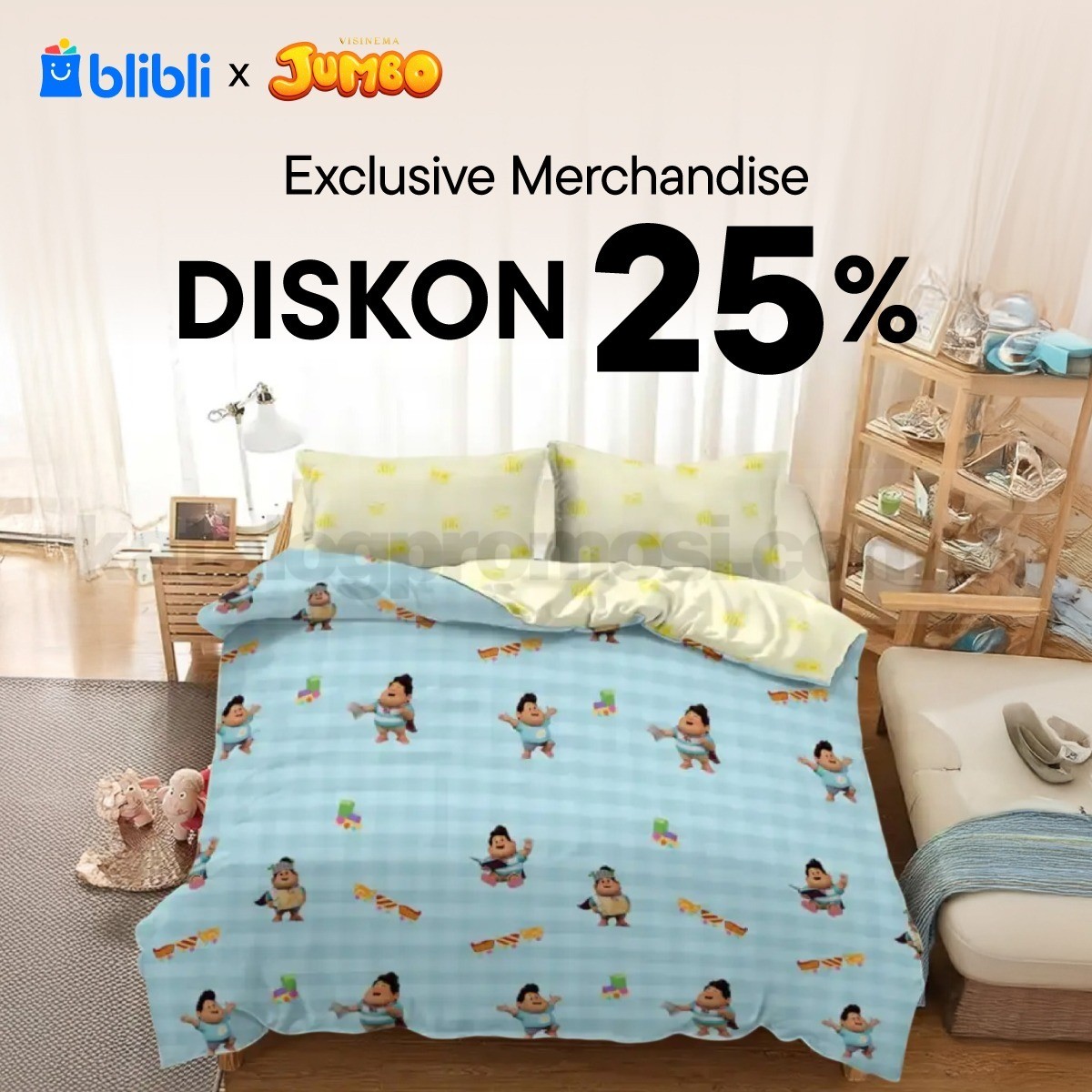 Promo Blibli Exclusive Merchandise Jumbo Diskon 25% untuk set sprei dan sarung bantal lucu berlaku mulai tanggal 12 Februari 2026 – 31 Maret 2026 di aplikasi Blibli.