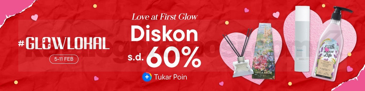 Diskon hingga 60% berlaku untuk produk kecantikan dan perawatan diri yang termasuk dalam kampanye Glow Lokal.