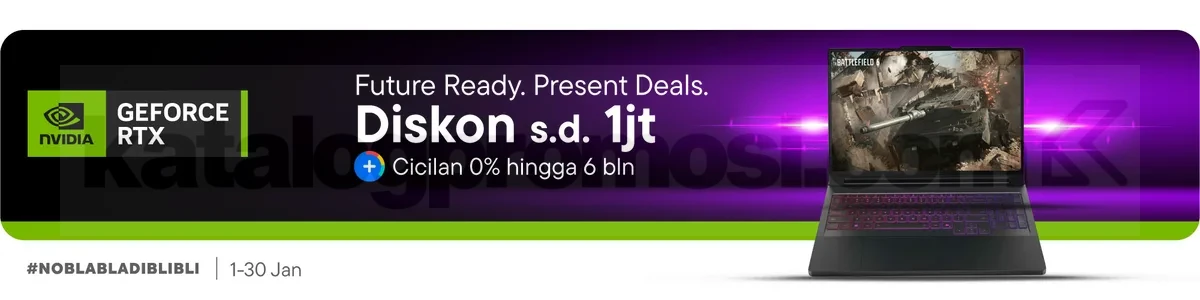 Promo Blibli Laptop Gaming Nvidia GeForce RTX Diskon Rp. 1.000.000, cicilan 0% hingga 6 bulan, berlaku mulai 1 – 30 Januari 2026.