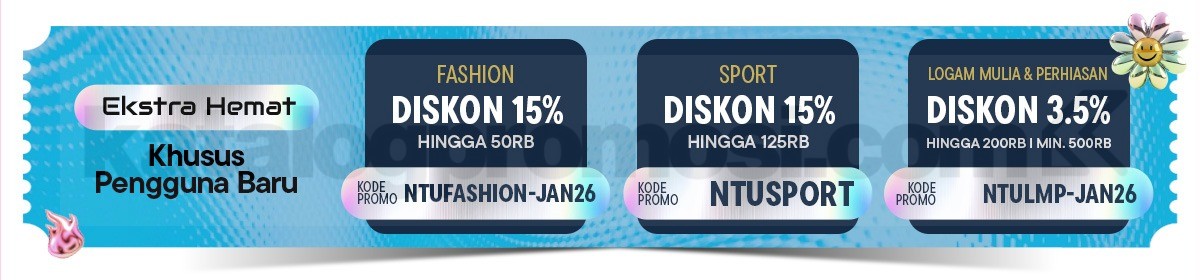 Diskon Logam Mulia & Perhiasan sebesar 3,5% dengan maksimal potongan Rp. 200.000 dengan minimum transaksi Rp. 500.000 menggunakan kode NTULMP-JAN26.