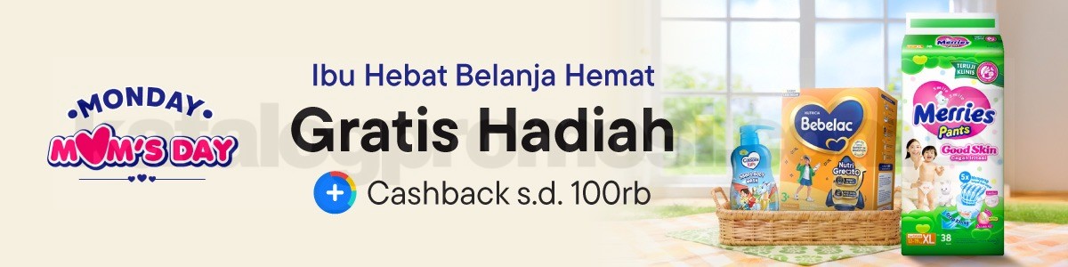 Promo Blibli Monday Moms Day cashback Rp. 100.000 + gratis hadiah untuk produk pilihan, belanja min. Rp. 500.000 berlaku 20 April 2026.