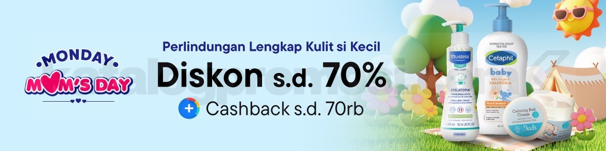 Promo Blibli Monday Moms Day Perlindungan Kulit Diskon 70% perlindungan lengkap si kecil dengan diskon hingga 70% + cashback, berlaku mulai tanggal 19 Januari 2026 di aplikasi Blibli.