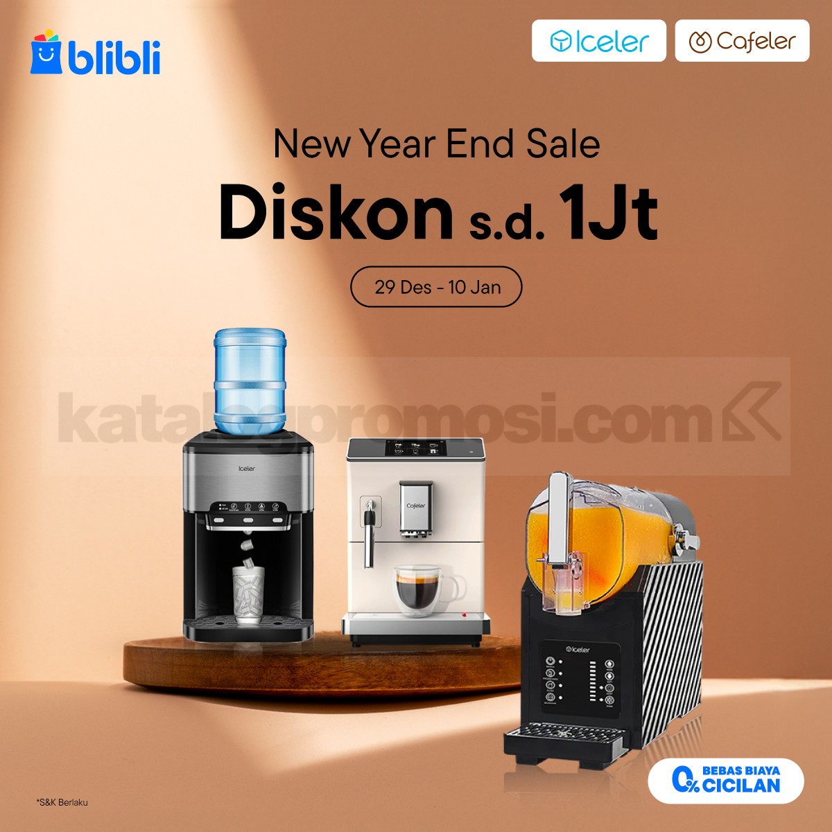 Promo Blibli New Year End Sale Iceler Cafeler diskon hingga Rp. 1.000.000, cicilan 0%, tanpa minimum transaksi, berlaku mulai tanggal 29 Desember 2025 – 10 Januari 2026.