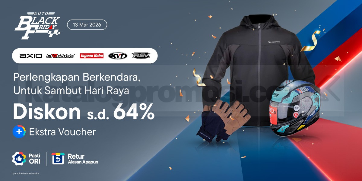 Promo Blibli Oto Black Friday Helm Jaket Diskon 64% dengan ekstra voucher potongan harga berlaku mulai tanggal 13 Maret 2026 di Blibli.