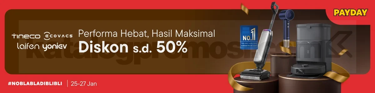Lewat promo ini, Blibli menghadirkan potongan harga menarik hingga 50% untuk berbagai produk rumah tangga dari brand ternama seperti Tineco, Ecovacs, Laifen, dan Yoniev. Produk-produk ini dikenal dengan performa mumpuni serta teknologi modern yang membantu pekerjaan rumah jadi lebih cepat dan ringan.