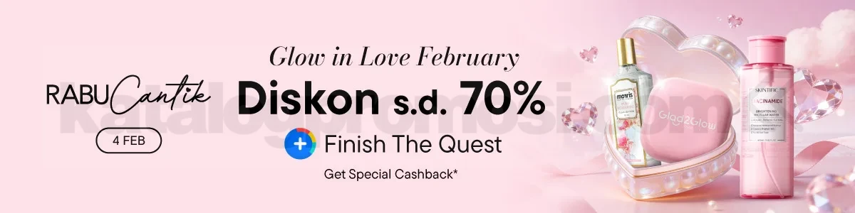 Promo Blibli Rabu Cantik Skincare & Makeup Diskon hingga 70% belanja produk kecantikan plus cashback quest berlaku tanggal 4 Februari 2026.