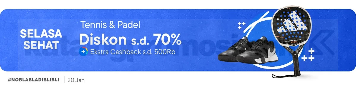 Dengan potongan harga besar dan cashback menarik, momen Selasa Sehat ini jadi waktu yang pas buat upgrade perlengkapan tennis dan padel kamu. Langsung buka aplikasinya, pilih gear incaran, dan rasakan sendiri keuntungan belanja olahraga dengan Promo Blibli Selasa Sehat yang lagi jalan hari ini.
