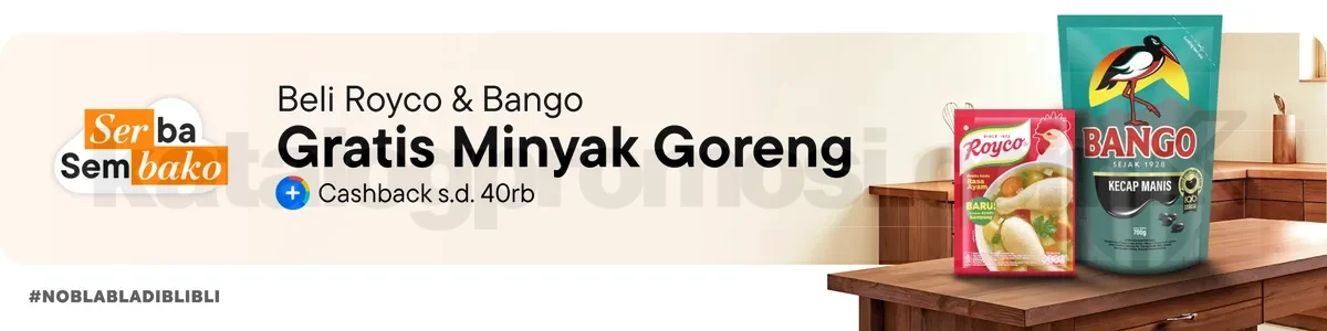 Promo Blibli Serba Sembako gratis minyak goreng beli Royco & Bango min. Rp200.000 + cashback hingga Rp. 40.000 berlaku 23 April 2026 – 30 April 2026.