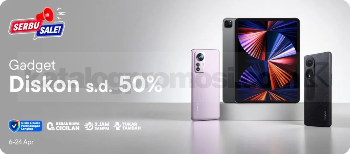 Promo Blibli Serbu Sale Gadget Diskon hingga 50% cicilan 0% dan gratis perlindungan berlaku mulai tanggal 6 April 2026 – 24 April 2026.