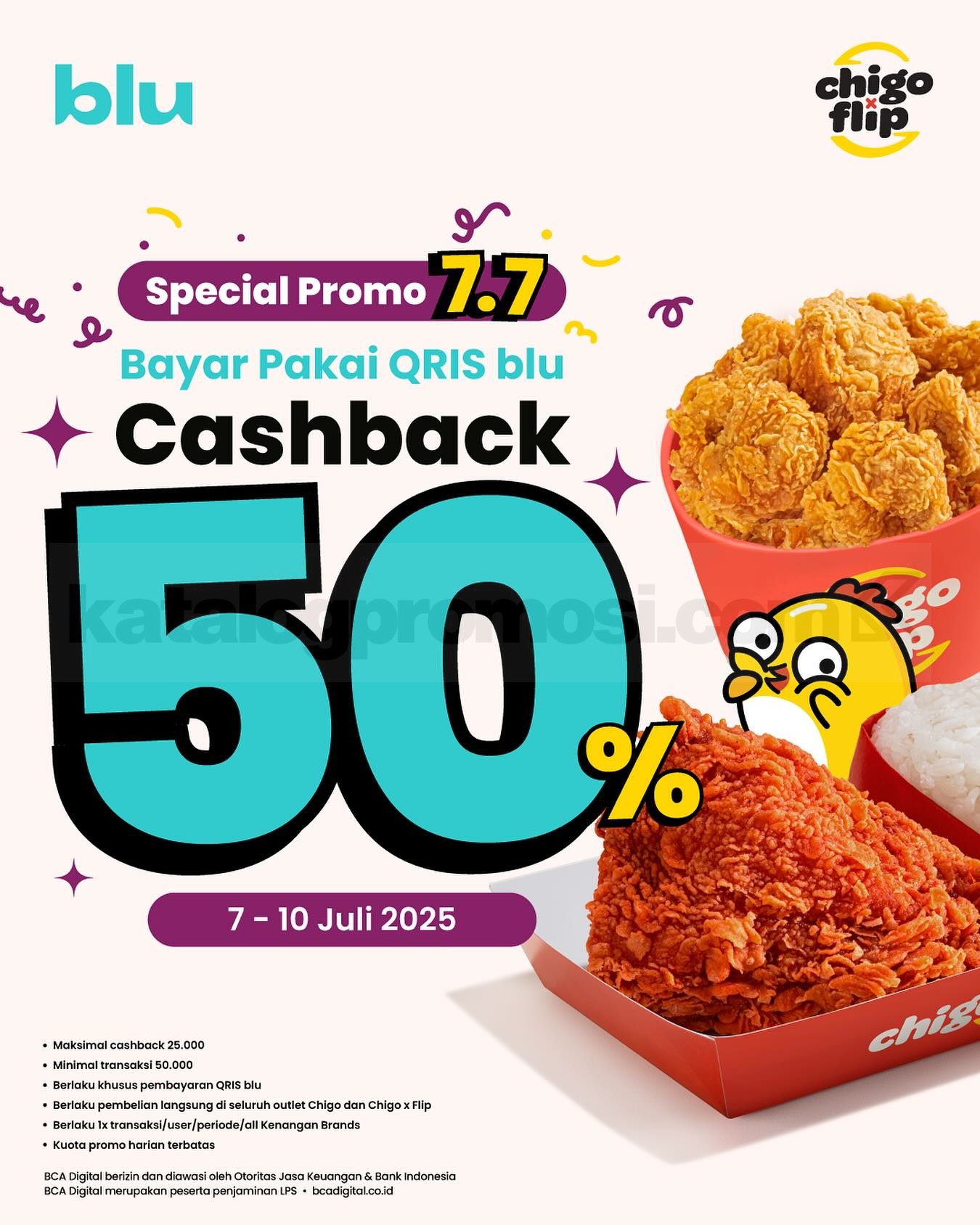 Promo Chigo x Flip Payday cashback hingga 80% + diskon 50% via BRI, CIMB Niaga, AstraPay, berlaku hingga 31 Desember 2025 di seluruh outlet.