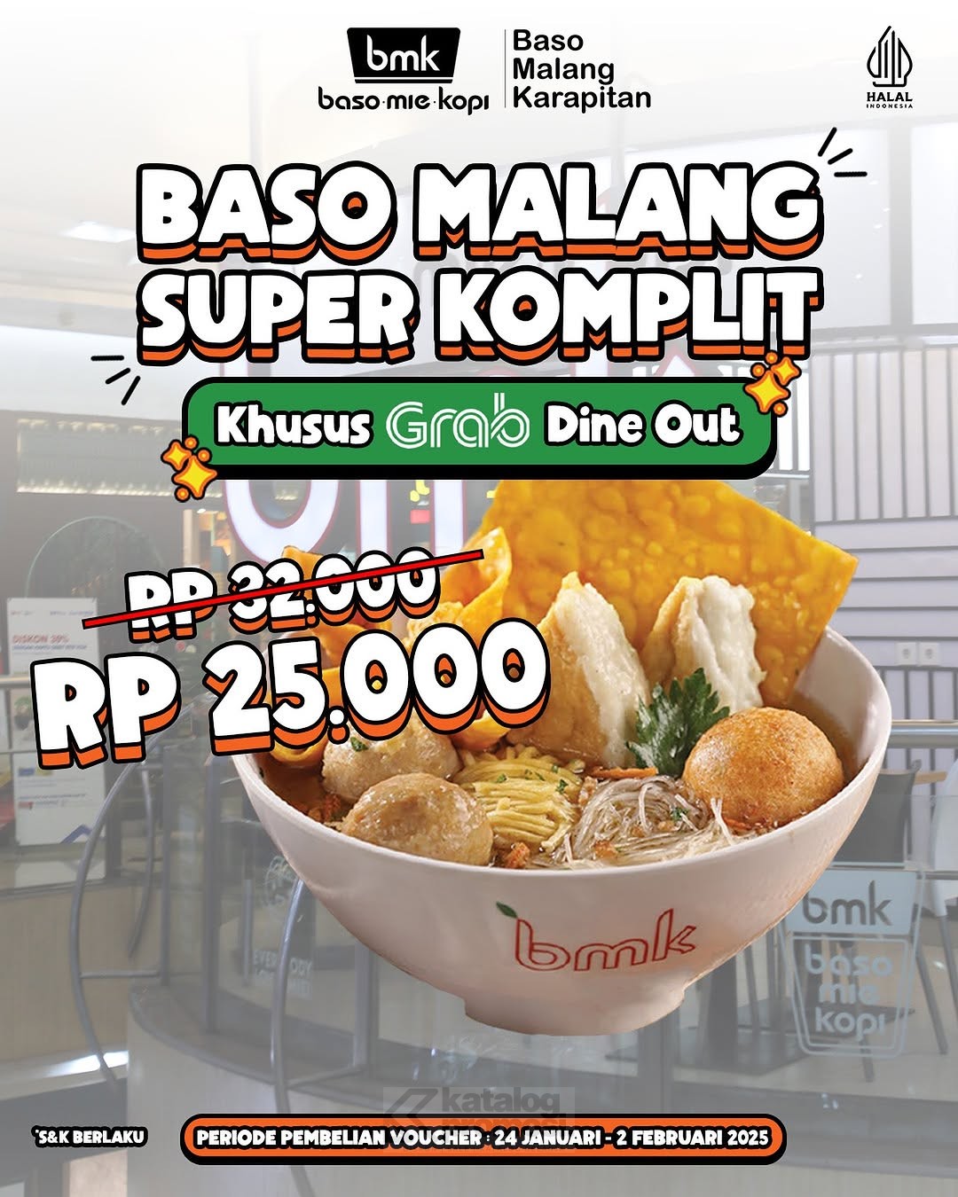 Promo GoFood Flash Sale di BMK hadir dengan Baso Malang Campur & Baso Urat mulai 28 ribuan. Pesan sekarang sebelum 31 Juli 2025