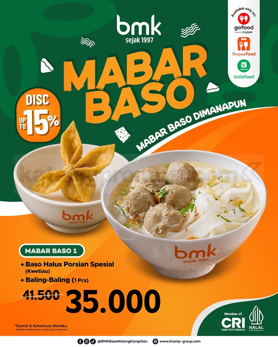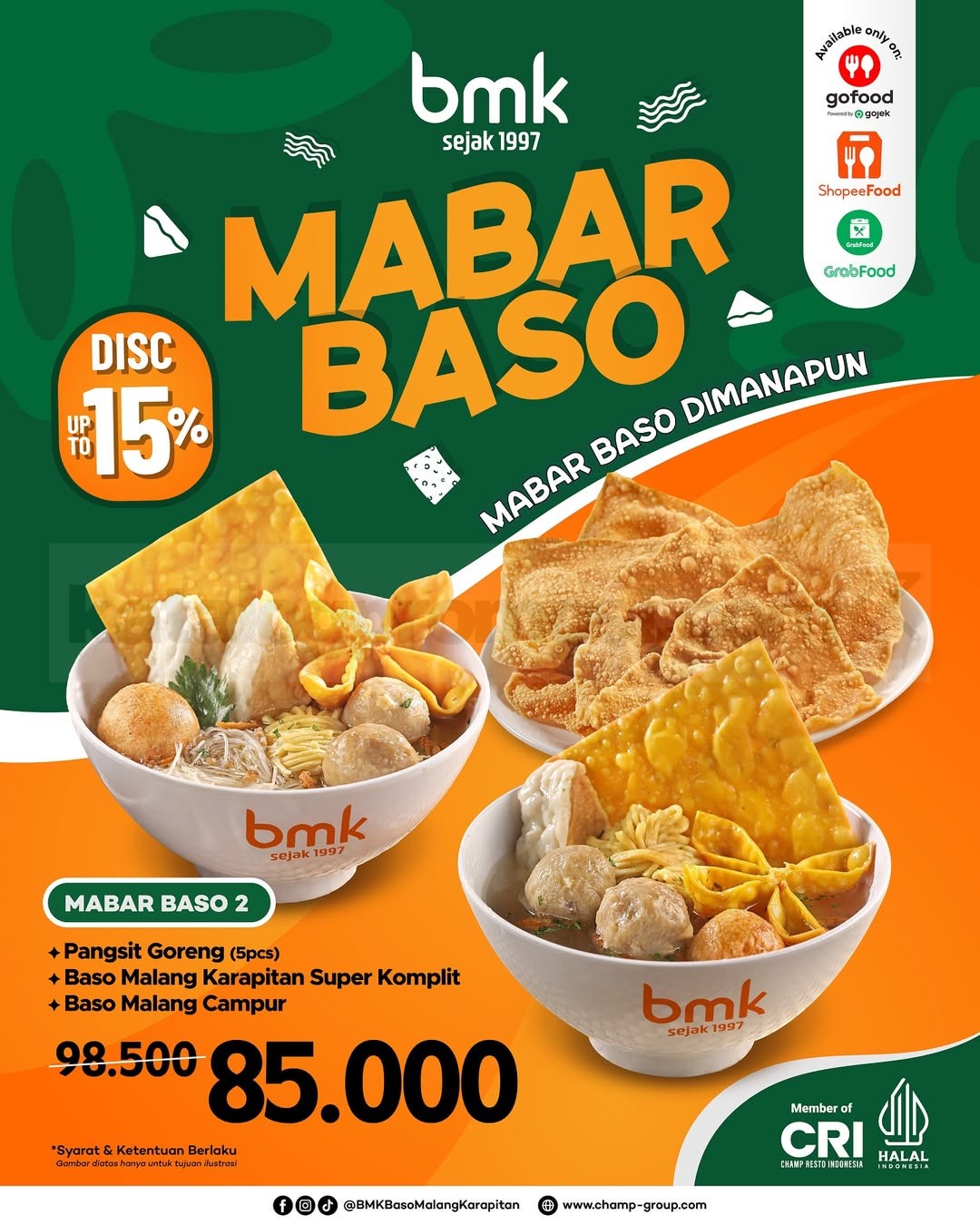 Yuk, buruan manfaatin Promo BMK Paket Mabar Baso mulai Rp35.000 ini sekarang juga! Pesan lewat GoFood, GrabFood, atau ShopeeFood dan siapin momen makan bareng kamu jadi lebih asik, enak, dan pastinya hemat. ๐ฒ๐ฅ