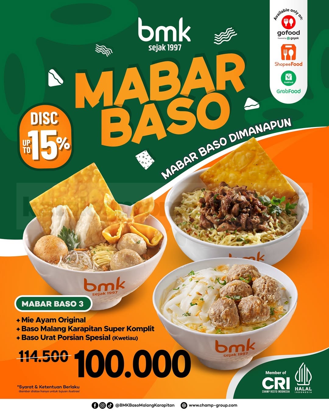 Promo BMK Paket Mabar Baso mulai Rp35.000 hadir Oktober ini dengan 3 paket hemat. Pesan lewat GoFood, GrabFood, atau ShopeeFood!