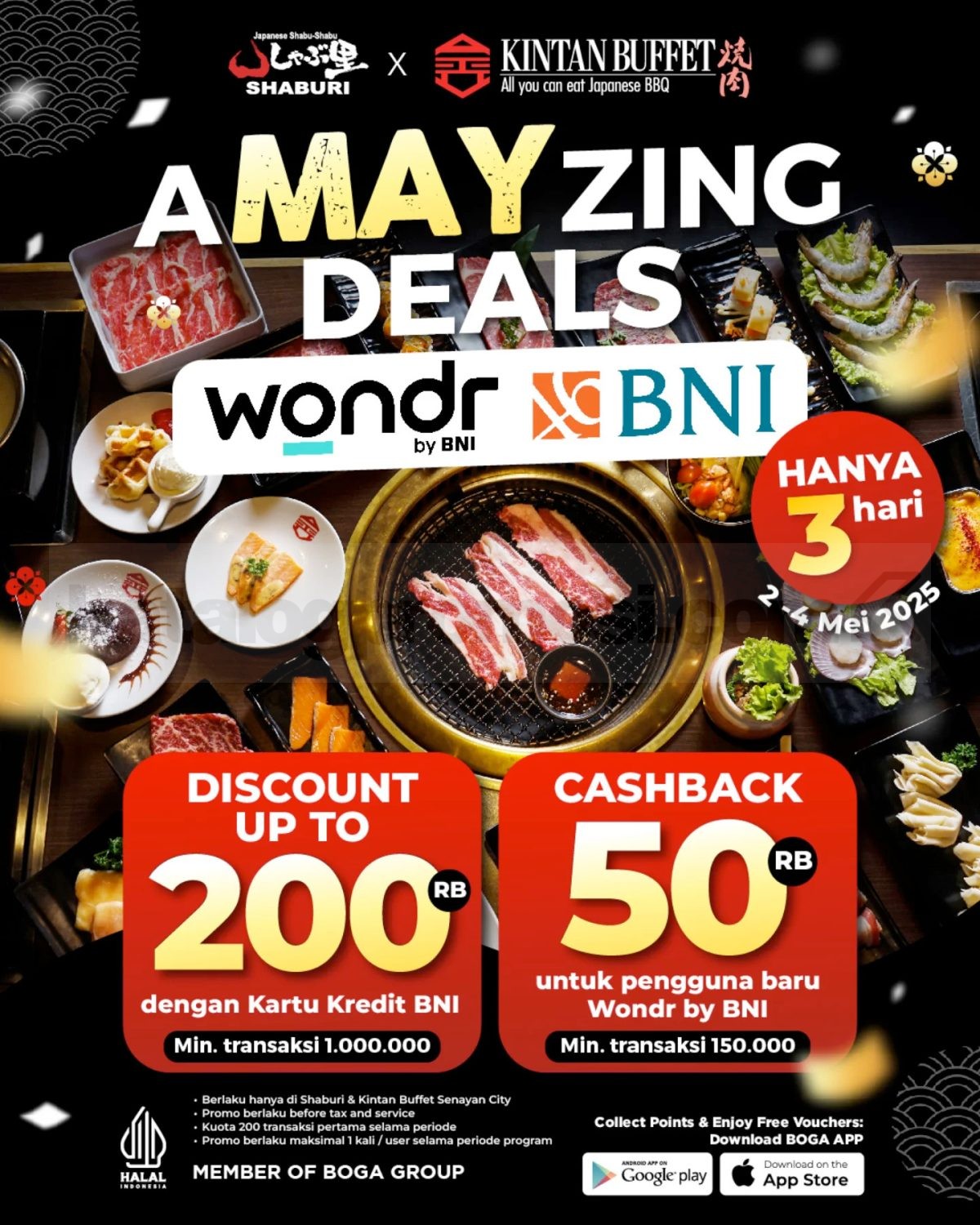 Promo Shaburi Kintan Buffet HUT BNI 79! Diskon Rp79.000 tiap Sabtu & Minggu mulai tanggal 12β27 Juli 2025, bayar pakai QRIS wondr by BNI di seluruh outlet.