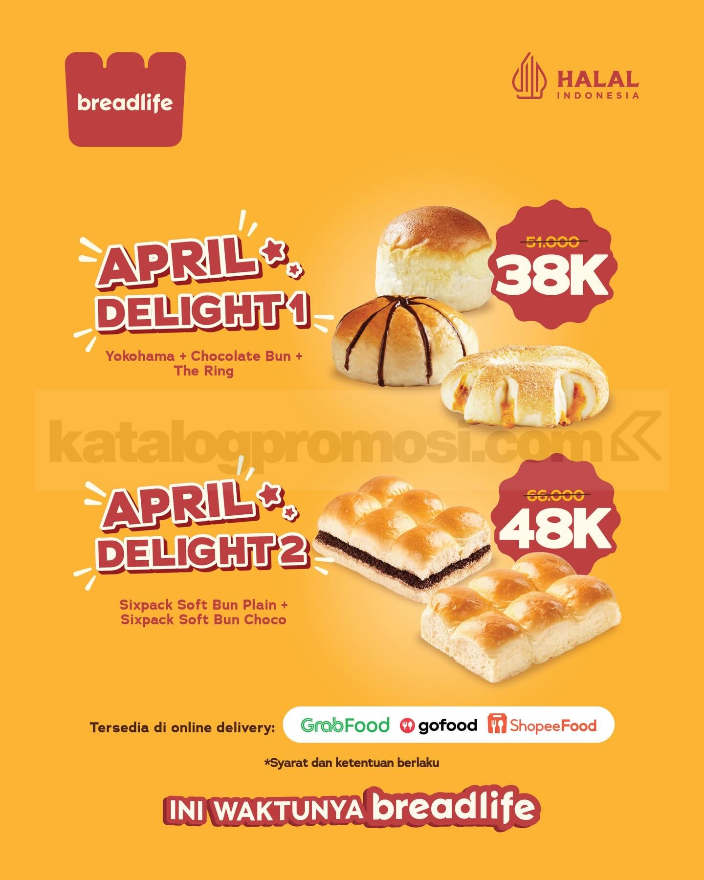 Promo berlaku melalui layanan online delivery BreadLife di GrabFood, GoFood, dan ShopeeFood di lokasi tertentu.