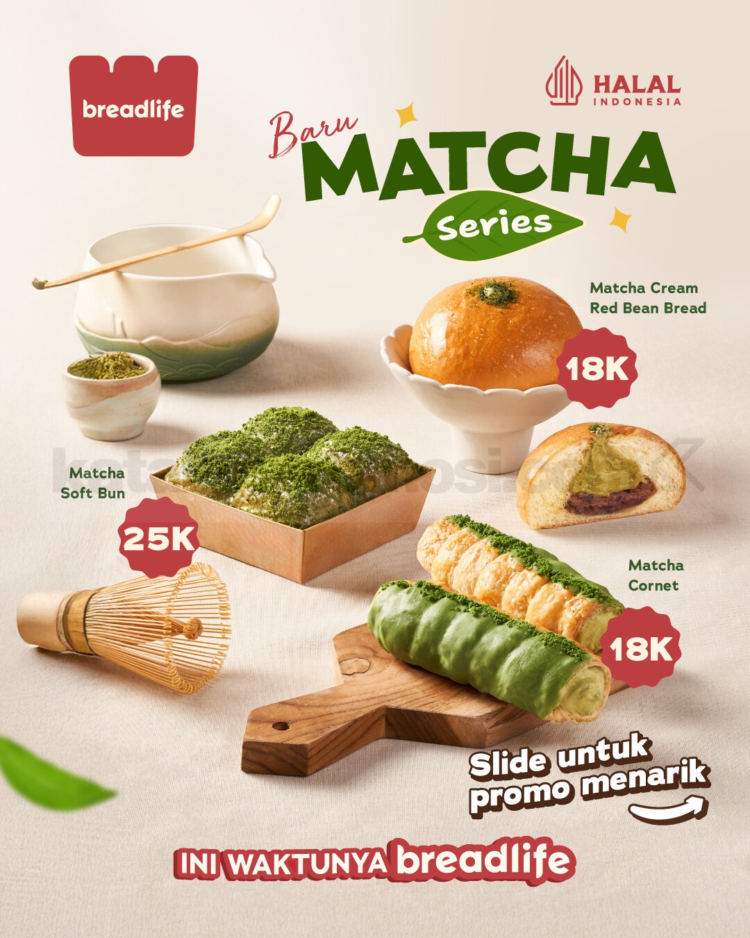 Promo Breadlife New! Matcha Series berlaku selama persediaan masih ada.