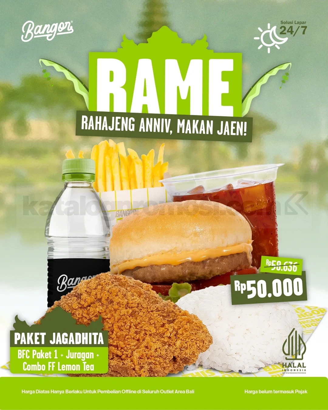 - Promo tersedia di seluruh outlet Burger Bangor Bali.