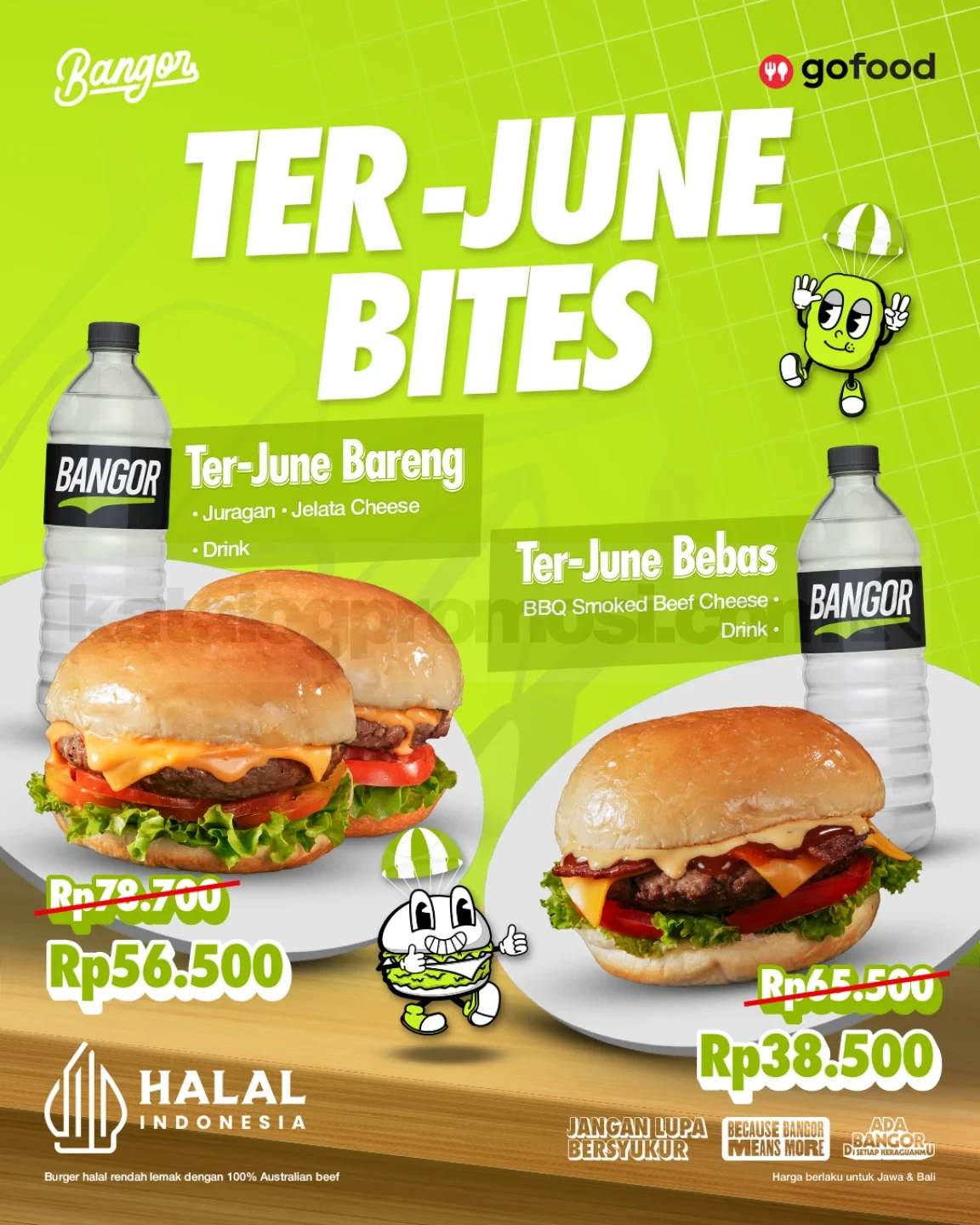 Periode promo sesuai kebijakan Burger Bangor dan dapat berubah sewaktu-waktu tanpa pemberitahuan sebelumnya.