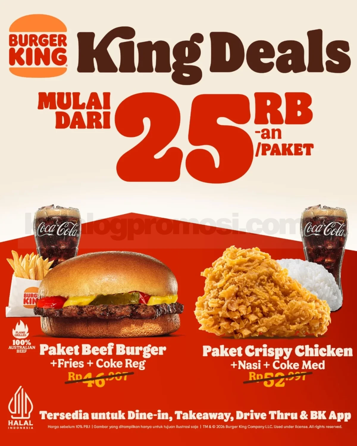 Berlaku selama periode promo sesuai kebijakan Burger King.