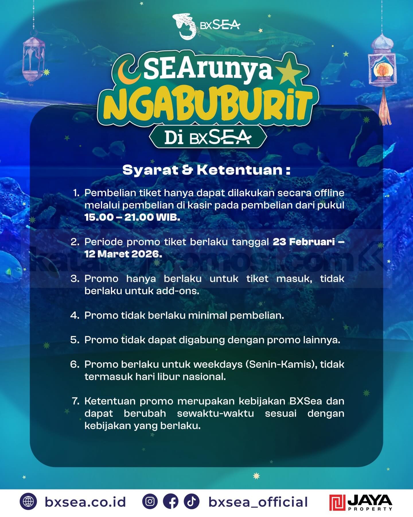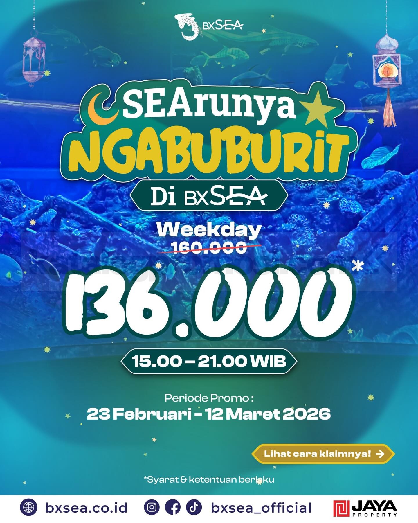 👉 Cek gambar Promo BXSea SEArunya Ngabuburit Tiket Rp. 136.000 di bawah ini untuk lihat detail jam kunjungan dan harga spesialnya 👇