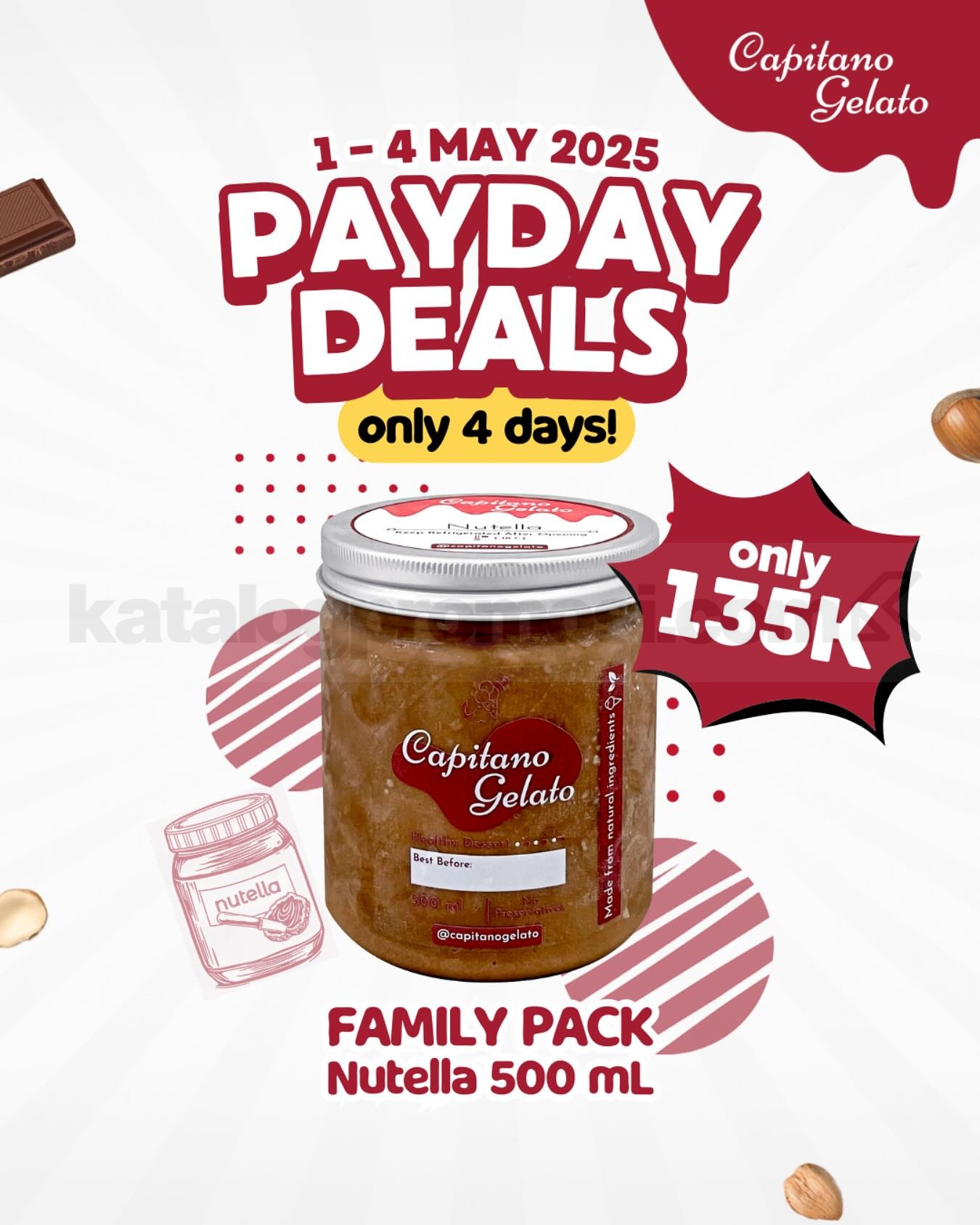 Promo berlaku dengan pembelian 5 jar Capitano Gelato akan mendapatkan gratis 1 jar.