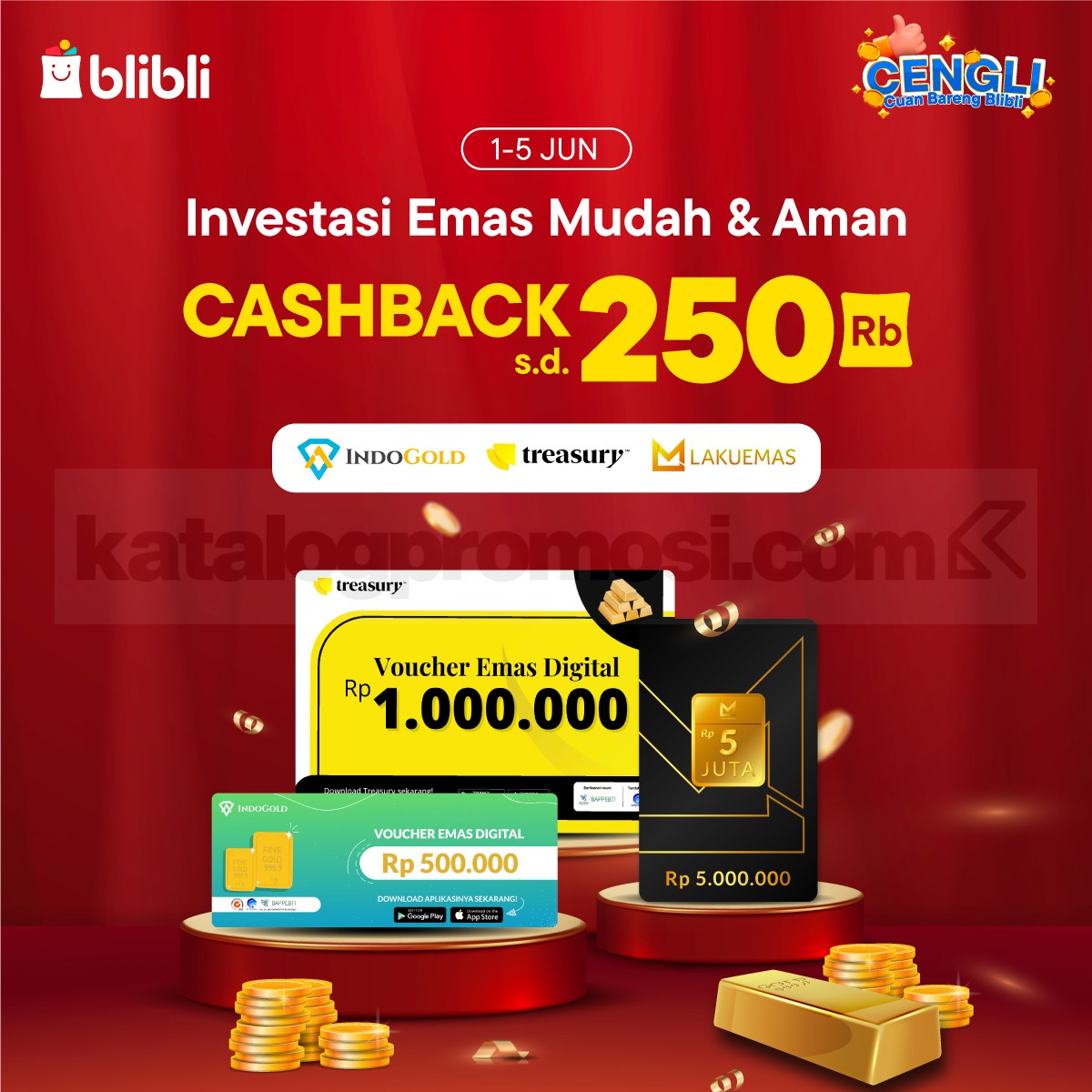Mau investasi emas yang mudah, aman, dan cuan? Promo Cengli TIVO Blibli jawabannya! Mulai dari Rp20 ribu, kamu bisa beli voucher emas digital dari partner terpercaya seperti Lakuemas, IndoGold, Treasury, Nanovest, dan Triv Exchange.