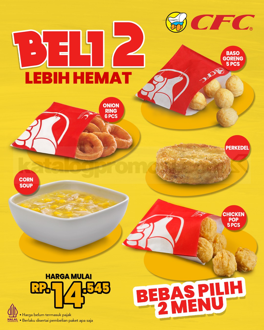 Promo CFC Beli 2 Lebih Hemat mulai Rp. 14.545 pilih 2 menu tambahan setiap beli paket berlaku selama periode promo berlangsung di seluruh outlet