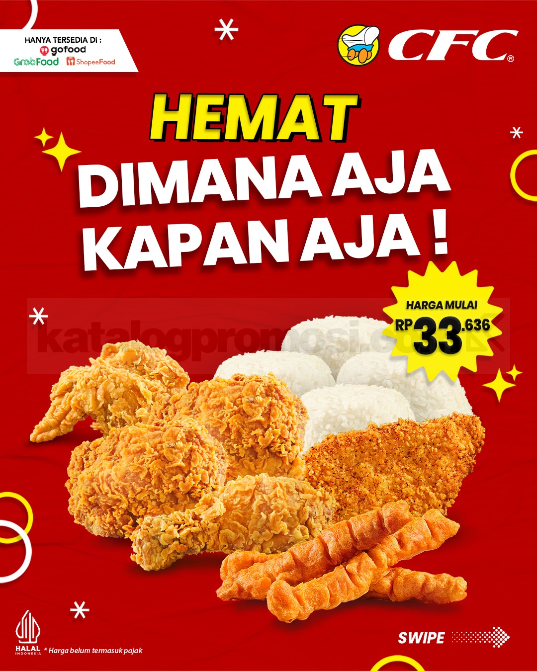 Langsung nikmati Promo CFC Paket Rame hari ini juga buat makan ramean yang tetap hemat! Pesan sekarang lewat aplikasi GrabFood, GoFood, atau ShopeeFood favoritmu dan siapin sendok nasi 🍽️ — karena makan ramean itu selalu lebih seru kalau irit bareng ✨