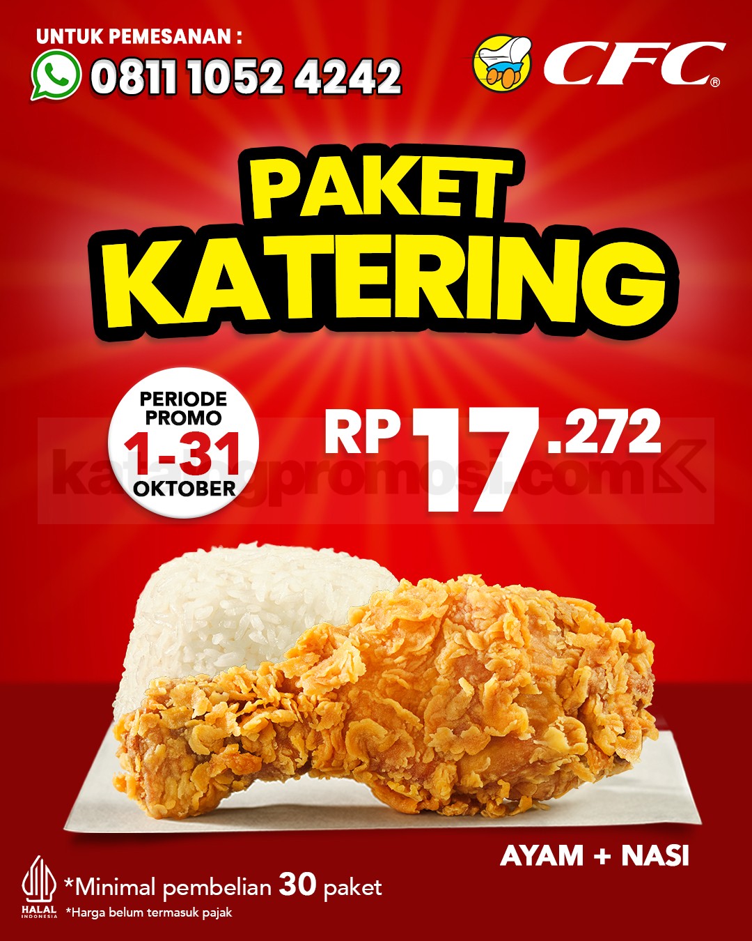 Promo CFC PAKET KATERING mulai Rp 17.272/pax minimal 30 pax. Ayam + nasi untuk meriahkan Acara. Berlaku s.d 31 Oktober 2025
