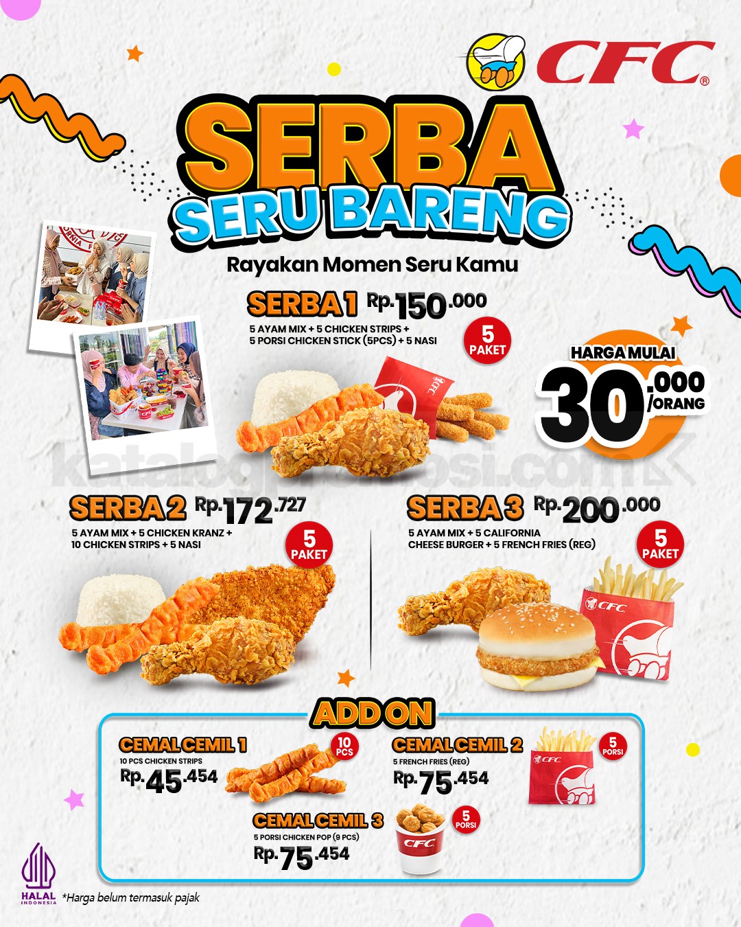 Jangan lewatkan Promo CFC Hore Gajian Paket Astaga Mulai Rp.40.909 untuk manjain diri sendiri atau ajak teman nikmati ayam crispy favorit CFC!