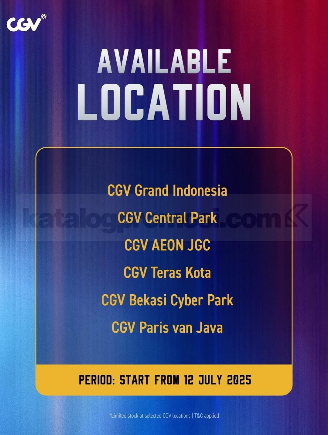 Berlaku di 20 lokasi CGV tertentu (cek daftar lengkapnya di website atau aplikasi CGV).