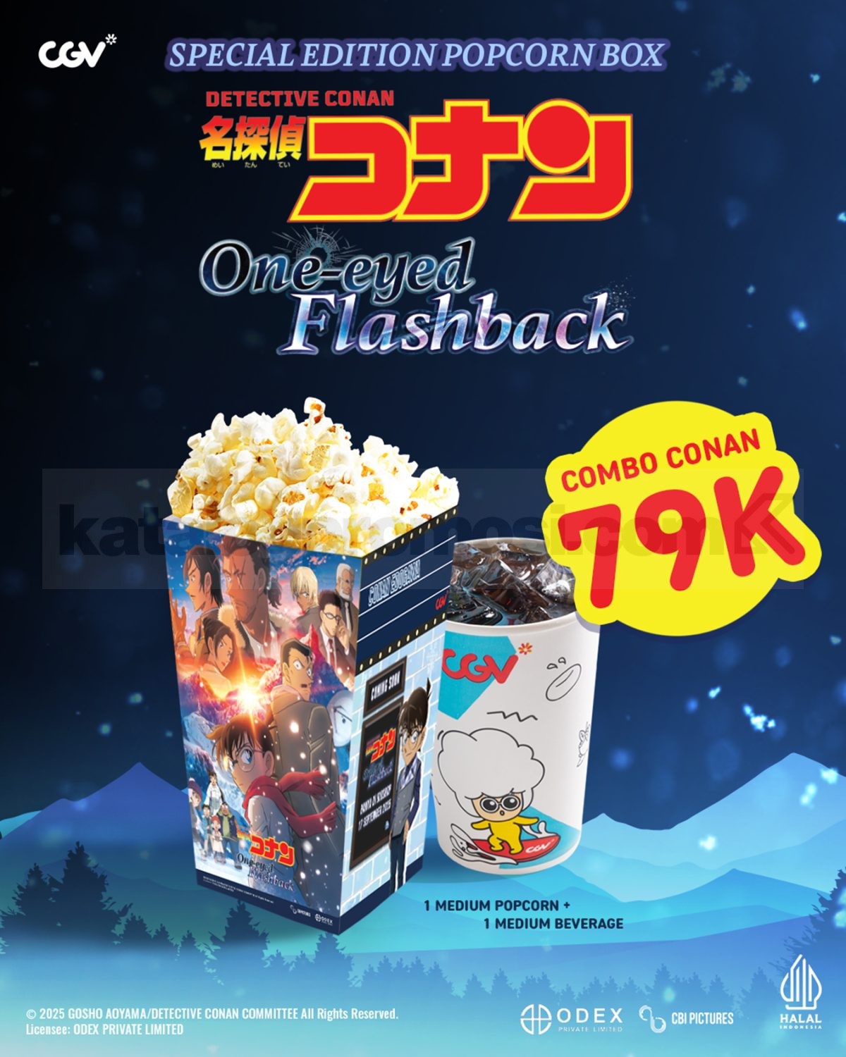 Promo CGV Conan Combo resmi hadir dan siap nemenin nonton kamu makin seru dengan Special Edition Popcorn Box Detective Conan: One-eyed Flashback yang super keren! 🔍🍿
