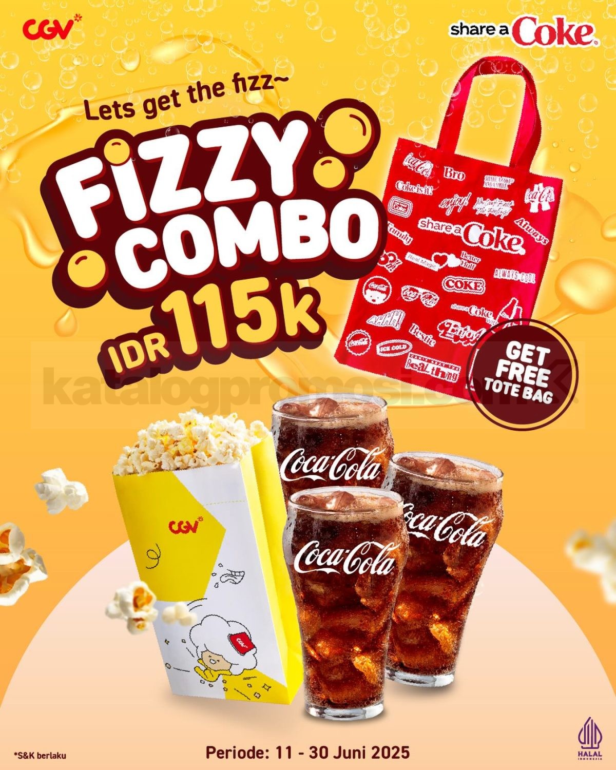 Promo CGV Fizzy Combo Rp115.000 berlaku 11β30 Juni 2025! Dapat popcorn, 3 soft drink, dan tote bag Share a Coke. Hanya tersedia di 32 lokasi CGV, selama persediaan masih ada.