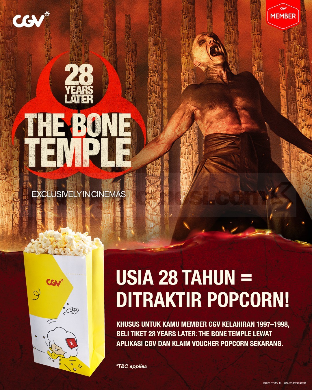 Geng 28 Tahun sini merapat! Nonton 28 Years Later: The Bone Temple di CGV jadi makin seru karena ada GRATIS Medium Salty Popcorn 🍿.