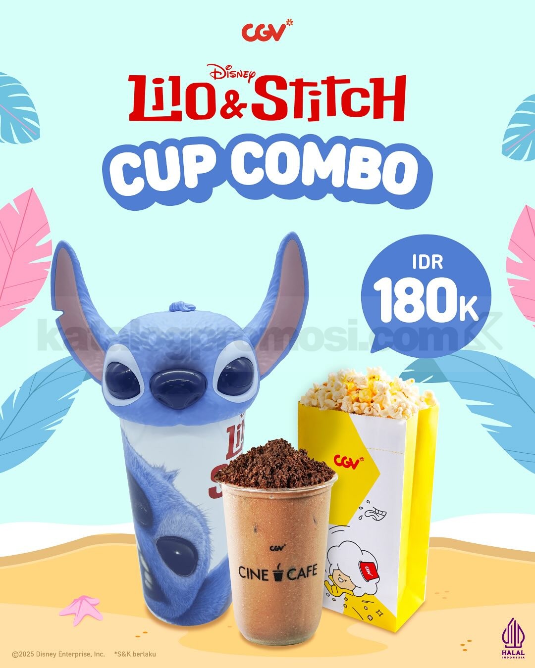 👉 Cek gambar promo CGV Lilo & Stitch Headcup Combo Rp180.000 di bawah ini untuk lihat bentuk cup dan pilihan isi combo-nya!