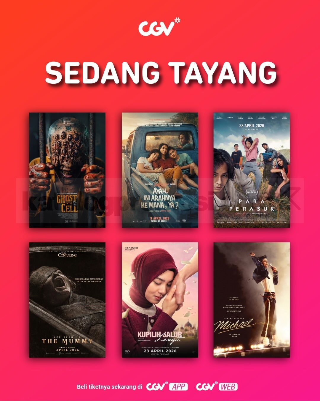 Yuk manfaatkan promo beli 1 gratis 1 tiket dari CGV ini selagi masih berlaku. Lumayan banget buat nonton film favorit tanpa harus keluar budget lebih, apalagi kalau pergi bareng orang tersayang 🎬✨